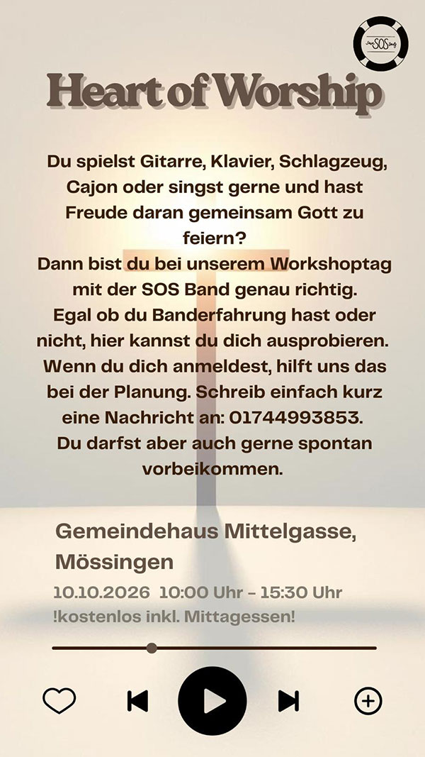 Dann bist du bei unserem Workshoptag mit der SOS Band genau richtig!
